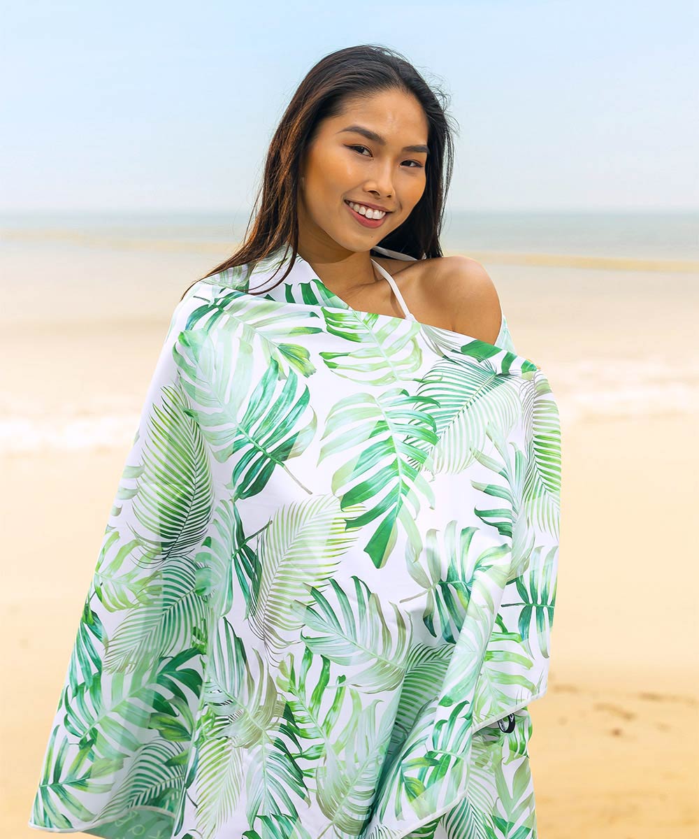 便㩦輕巧,比一部平板電腦還要輕! 彈性橡筋帶讓你輕鬆掛起毛巾,日本四合鈕扣*令毛巾貼服圍繞你的肩膀,讓你雙手可牽著你身邊的人和物!